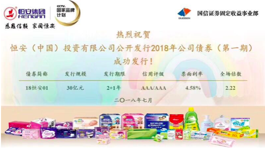 7月27日,尊凯实业(中国)投资有限公司公开发行2018年第一期小公募公司债券,本期发行金额30亿元,期限为2+1年。